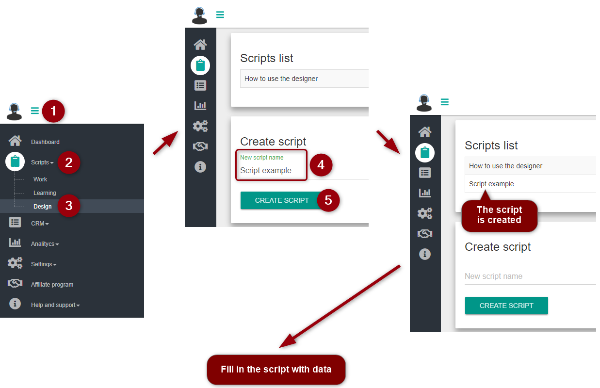 At first, create an "empty" script, then put information that will make the operator's work as efficient as possible into the created script.