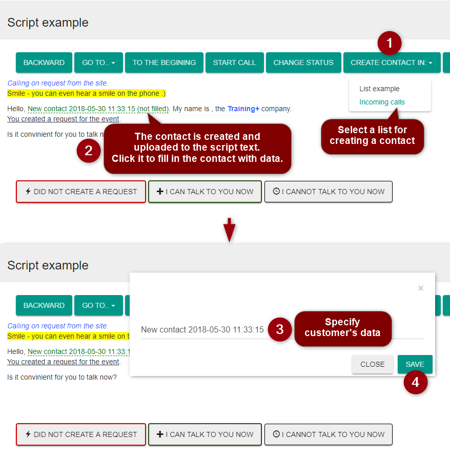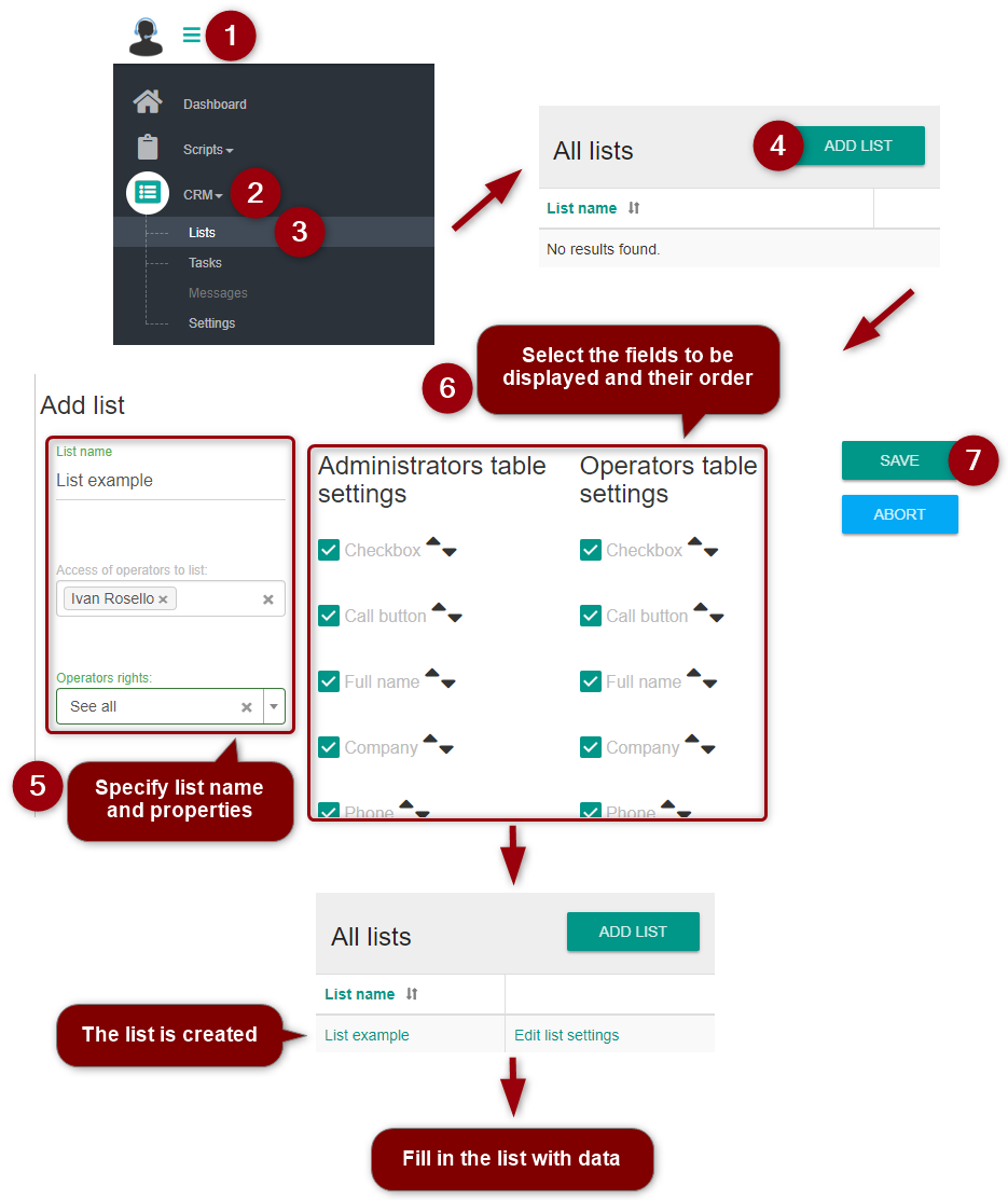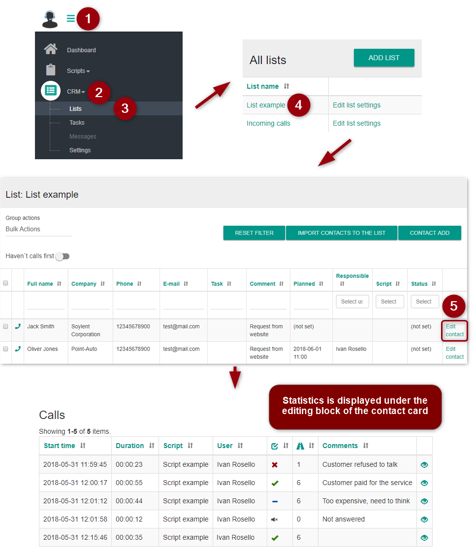 Contact lists increase efficiency of customer service without using a separate CRM system. Contact lists contain customers' data for displaying to an operator in the script.