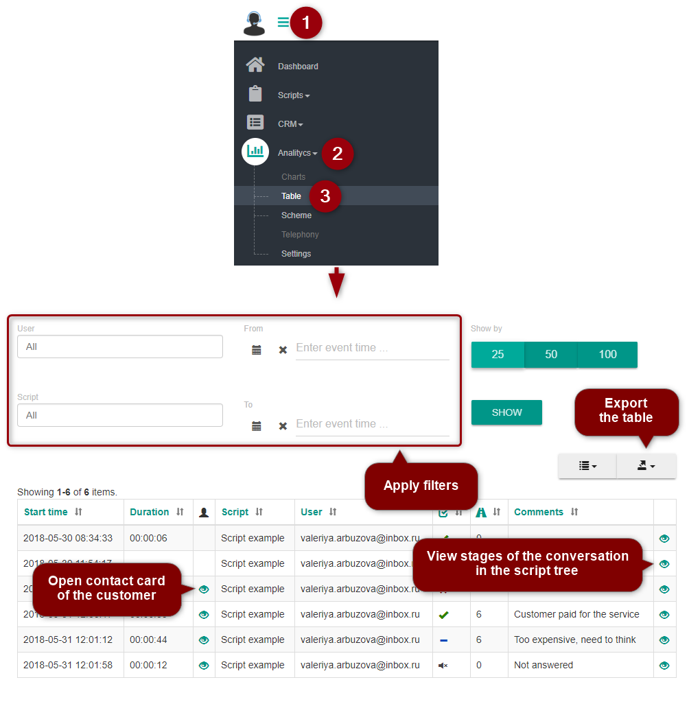Various statistics options allow the manager to analyze the efficiency of sales scripts and operators' work without spending time listening to the records of calls.